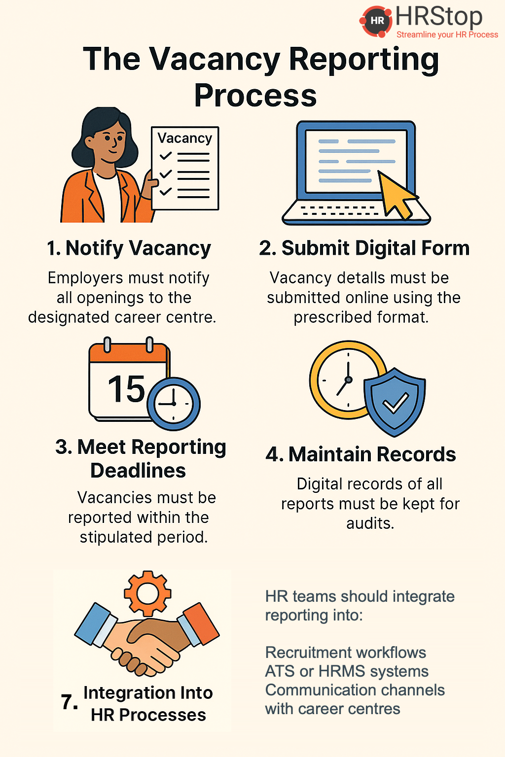 HRStop enables seamless vacancy reporting with digital job postings pre-filled templates automated recordkeeping and compliance alerts built into your recruitment workflow.